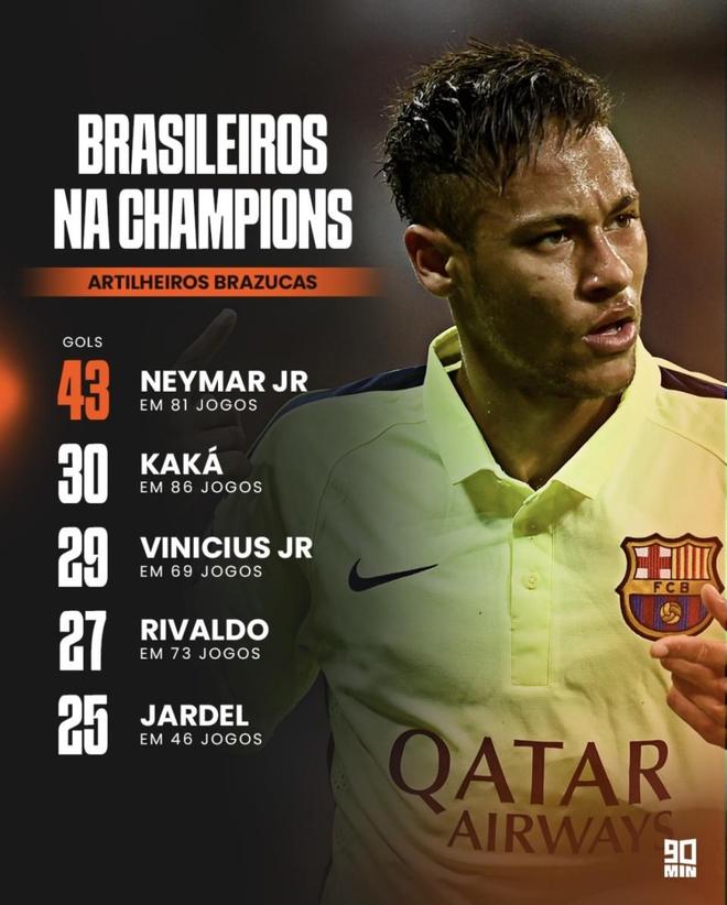 巴西欧冠射手榜前五名!看到榜单后 才知道内马尔有多厉害